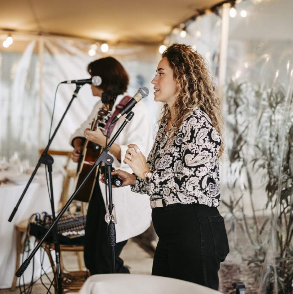 Duo acoustique : guitare, 2 voix, percussions et harmonica, parfait pour un cocktail intimiste, un vin d’honneur ou un repas en musique.