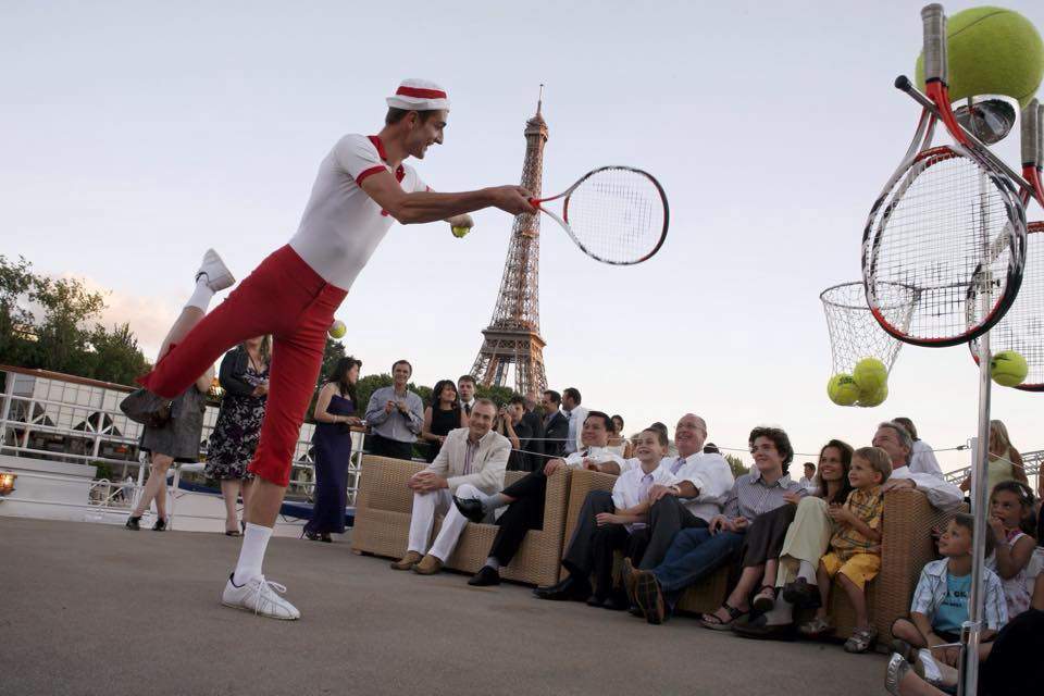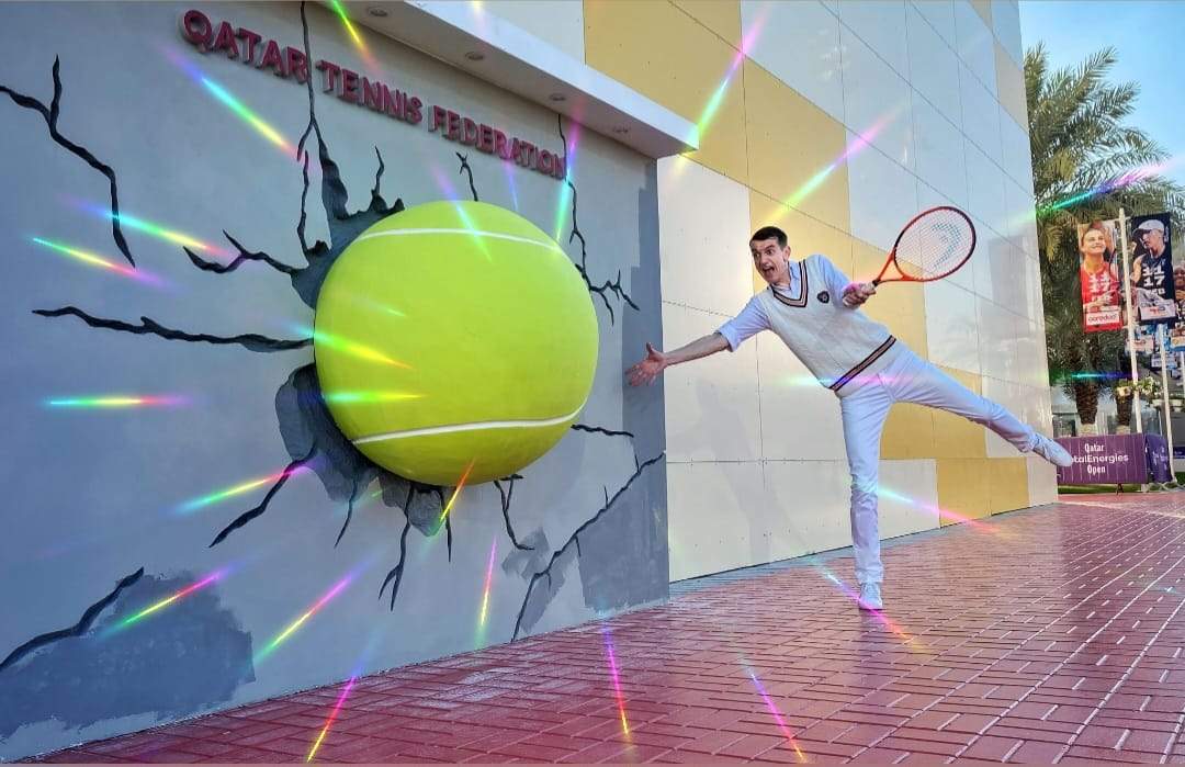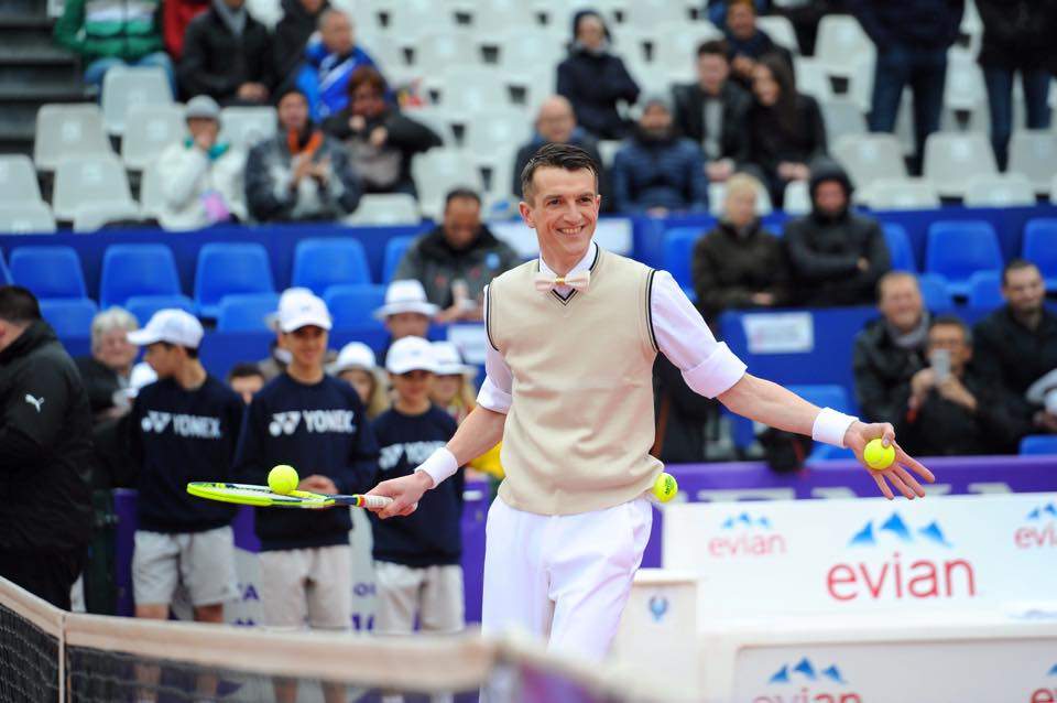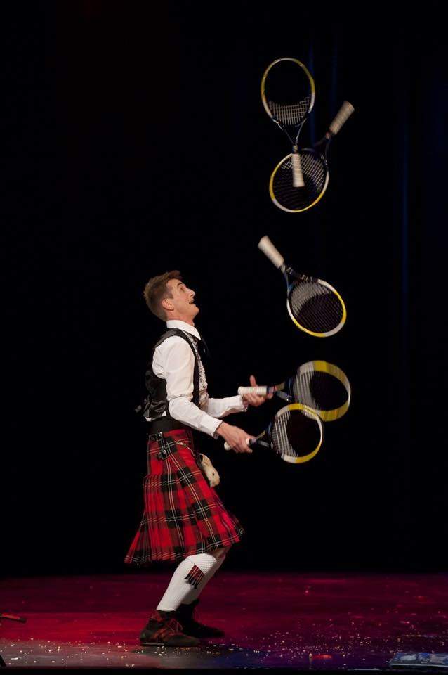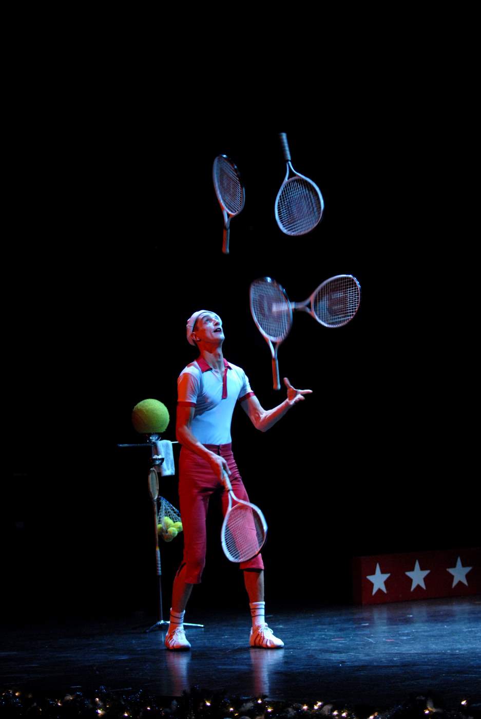 Dom-Dom, artiste franco-écossais professionnel trié sur le volet par Yohan Sati, vous propose un spectacle visuel singulier et festif : Les Raquettes de la Balle. Ce numéro burlesque de jonglerie humoristique autour de l’univers du tennis combine élégance rétro, performance physique et comédie visuelle. Incarnant un personnage atypique, mi-tennisman gentleman, mi-athlète désinvolte, Dom-Dom enchaîne les cascades, les jeux d’équilibre, les lancers de balles et les ratés hilarants avec une précision inspirée des maîtres du cinéma muet comme Jacques Tati ou Buster Keaton.