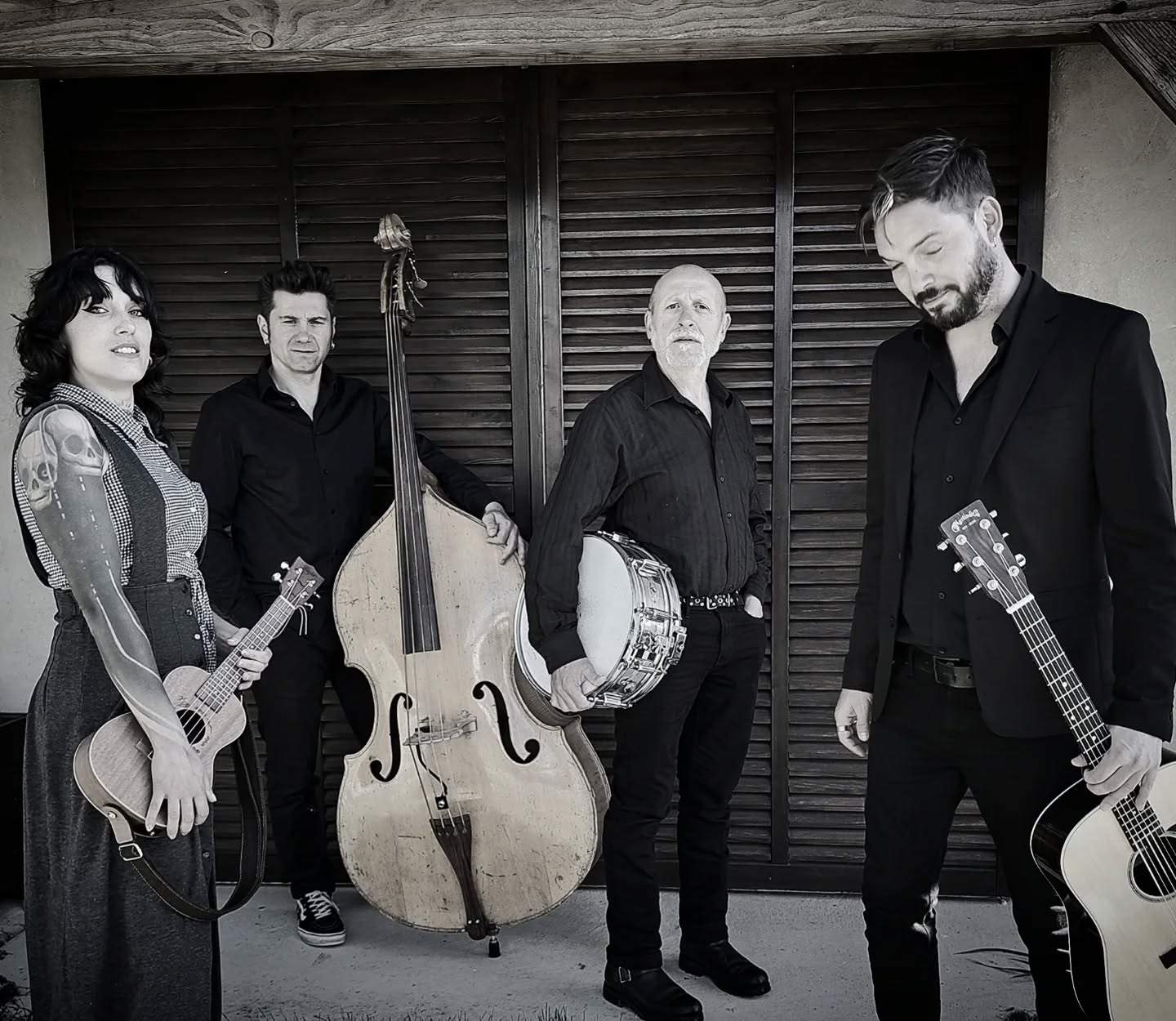 Quartet avec batterie et contrebasse pour un rendu plus festif et dansant, idéal pour des soirées plus dynamiques.