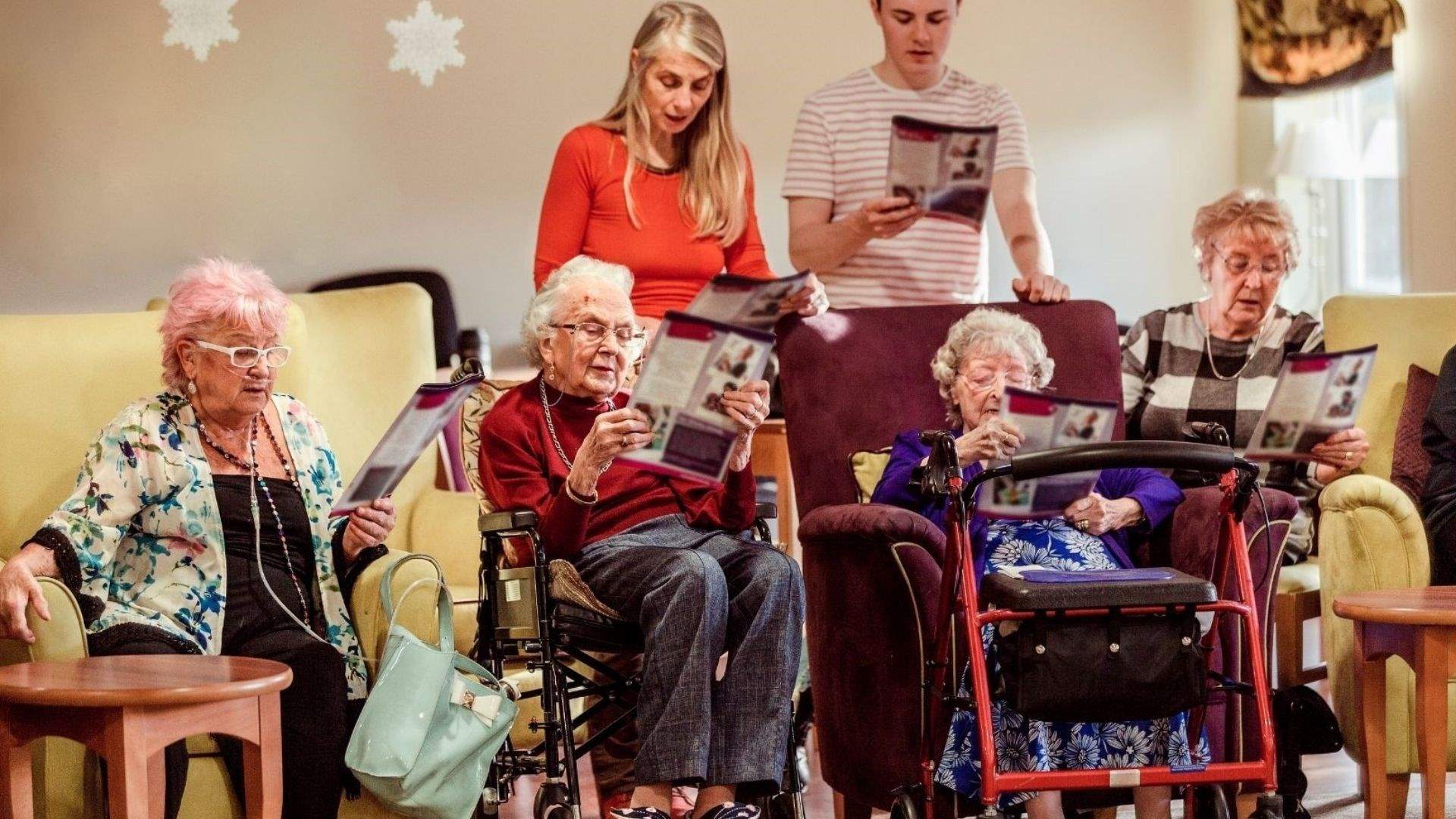 Karaoké nostalgie : invitez résidents et personnel à chanter ensemble.